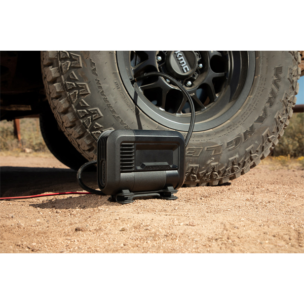 Introducing NOCO AIR15 a 12-volt, 15-amp portable air compressor with a 200-watt motor rated at a maximum pressure of 80 PSI. AIR15 is the next generation of portable air compressors, utilizing advanced motor and airflow design for tires up to 33-inches. It runs longer, fills faster, and is infinitely better.