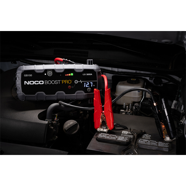 The GB150 is a portable lithium-ion battery jump starter pack that delivers 3,000-amps for jump starting a dead battery in seconds. It features a patented safety technology that provides spark-proof connections and reverse polarity protection making safe and easy for anyone to use. It's a powerful battery booster that doubles as a portable power source for recharging USB devices, like a smartphone, tablet and more, or powering 12-volt devices, like a tire inflator, power inverter and much more. Designed for a car, boat, RV, truck and more with both gas engines up to 9.0L and diesel engines up to 7.0L.