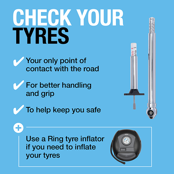 The tread gauge will show the depth of tread, letting you know if your tyres are legally compliant, and, therefore, safe on the road.