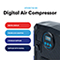 This air compressor has a digital display and shows pressure readings in PSI, bar, kPa, kg/cm2. It also comes with a built-in storage compartment for storing the supplied nozzle adaptors and hose pipe.