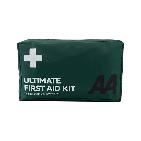 The AA Ultimate First Aid Kit is ideal for your car, home or for taking away on a trip or on holiday. It contains all the items needed to cleanse, dress and bandage an injury; and includes safety gloves and a first aid guidance leaflet. This handy first aid kit comes in a soft zip-up pouch for easy storage at home or in the car. The kit conforms to DIN 13164.