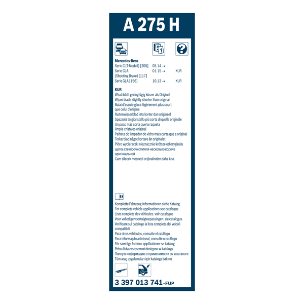 Bosch AeroTwin Flat Wiper Blade Rear A275HProduct Code: 485220890