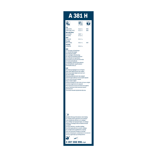 • Vehicle-specific and matching solutions featuring either Aerotwin, plastic or conventional wiper-rubber technology
