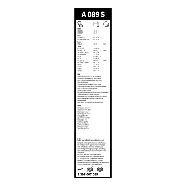 Bosch Aerotwin Flat Wiper Blade Set A089SProduct Code: 485774650