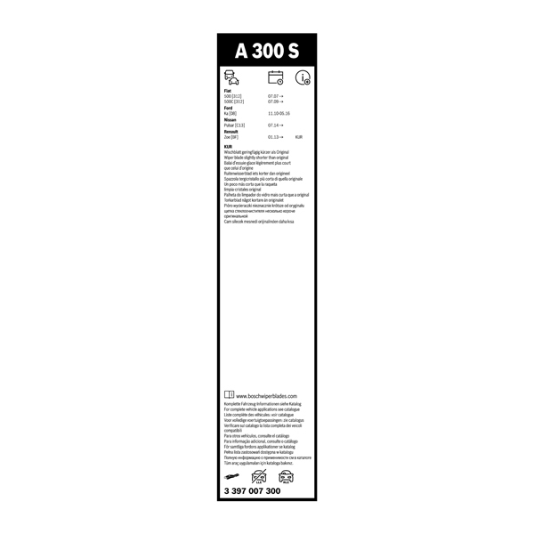 Bosch Aerotwin Flat Wiper Blade Set A300SProduct Code: 485771220
