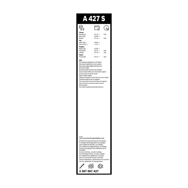 Bosch Aerotwin Flat Wiper Blade Set A427SProduct Code: 485771260