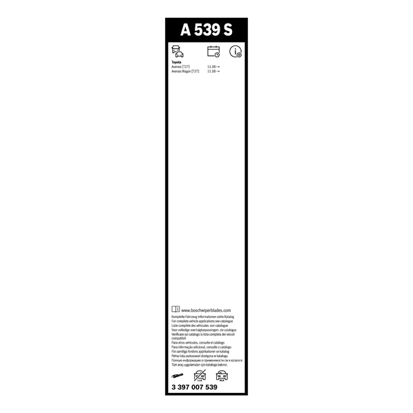 Bosch Aerotwin Flat Wiper Blade Set A539SProduct Code: 485776440