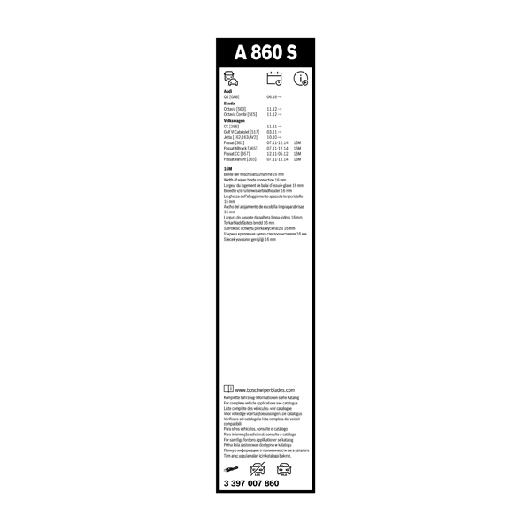 Bosch Aerotwin Flat Wiper Blade Set A860SProduct Code: 485776510