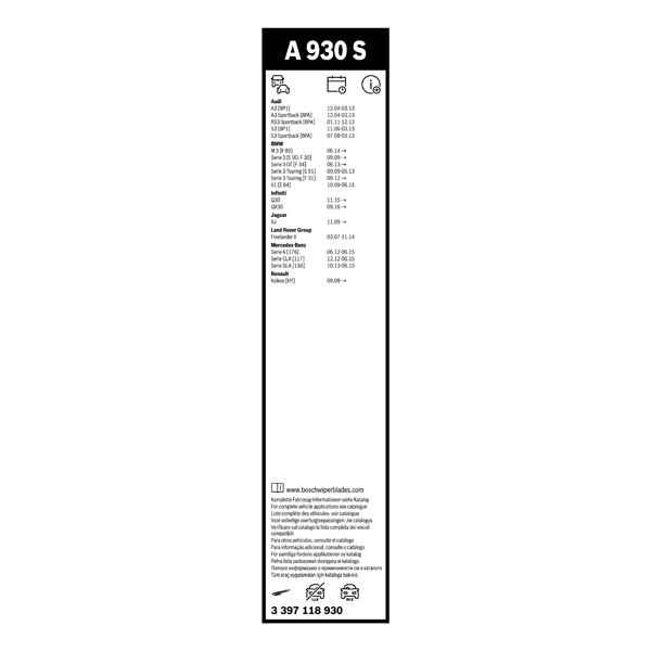 Bosch Aerotwin Flat Wiper Blade Set A930SProduct Code: 485774210