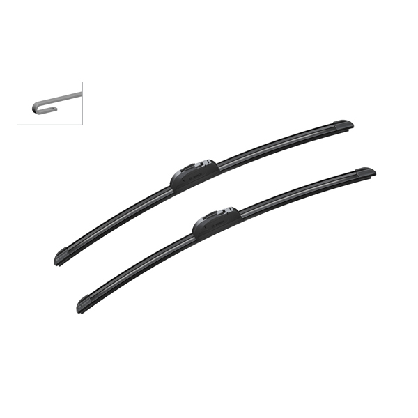 Scope of delivery: 1 set of front wiper blades driver side (length: 550 mm) and passenger side (length: 450 mm). Excellent wiping performance in any weather. Increased service life due to Power Protection Plus. Silent operation on both wet and semi-dry windscreens. Aerodynamic design: Stops lifting and vibrations through reduced windage for improved driver comfort and high speed. Quick and easy installation due to pre-assembled adapter.