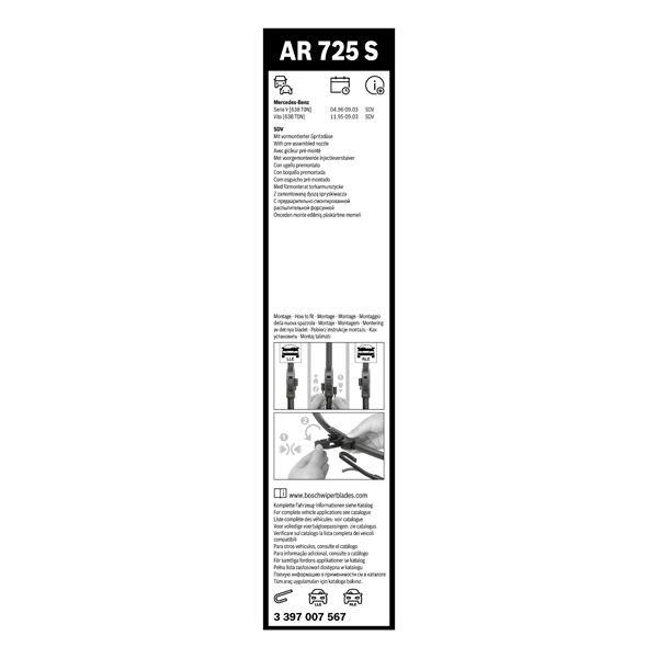 Bosch Retrofit Flat Wiper Blade Set Ar725S With Spray NozzleProduct Code: 485775500