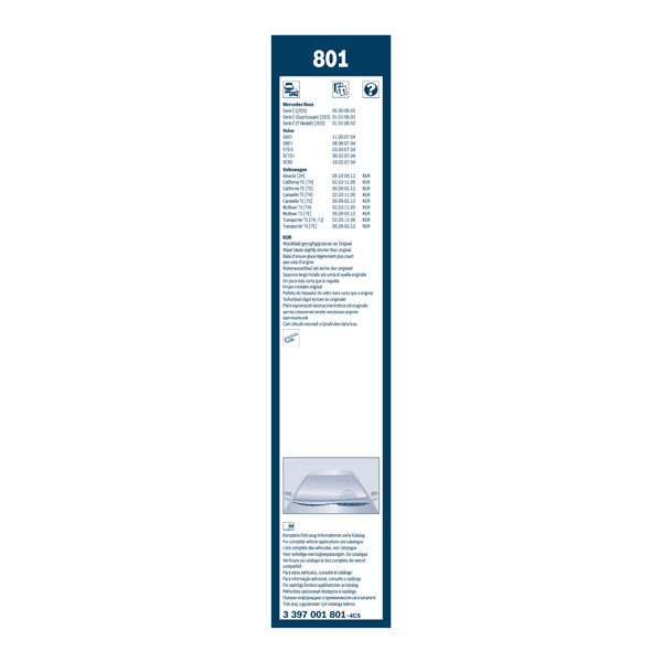 Bosch Specific Wiper Blade Set 801Product Code: 485773260