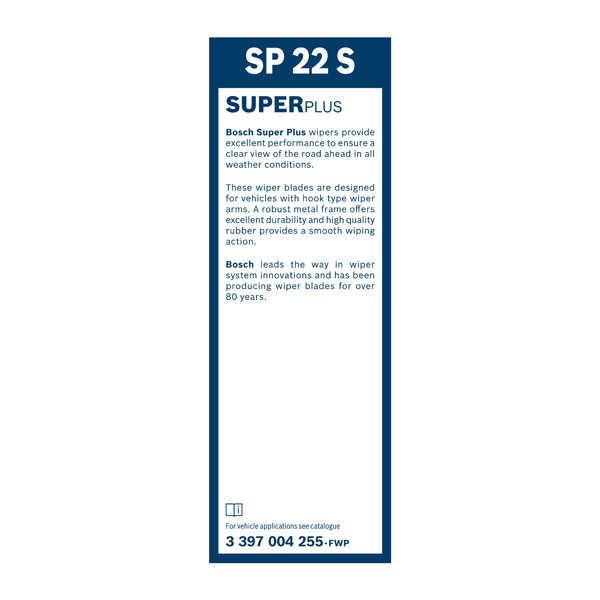 Bosch Super Plus Single Universal Wiper Blade With Spoiler SP22SProduct Code: 485772050