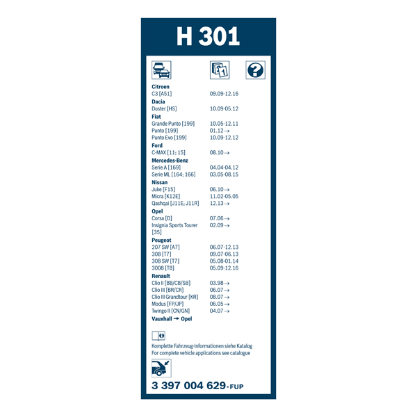 • Vehicle-specific and matching solutions featuring either Aerotwin, plastic or conventional wiper-rubber technology