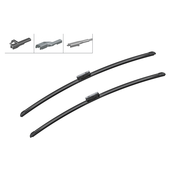Scope of delivery: 1 set of front wiper blades driver side (length: 550 mm) and passenger side (length: 450 mm). Excellent wiping performance in any weather. Increased service life due to Power Protection Plus. Silent operation on both wet and semi-dry windscreens. Aerodynamic design: Stops lifting and vibrations through reduced windage for improved driver comfort and high speed. Quick and easy installation due to pre-assembled adapter.