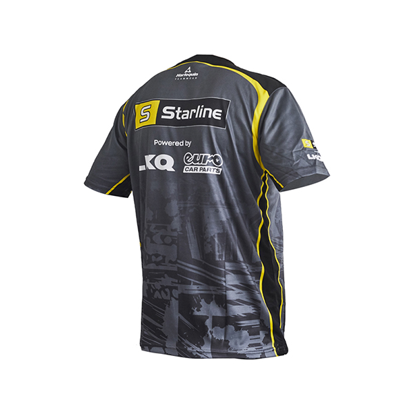 These branded British Super Bike t-shirts are made from 100% polyester, and combine innovation with comfort. They are durable and breathable, with moisture-wicking properties, and vivid sublimation print allows for the team to showcase it's branding, in a garment designed for the high-performance environment of the motorsport garage, as worn by the teams mechanical and engineering staff.