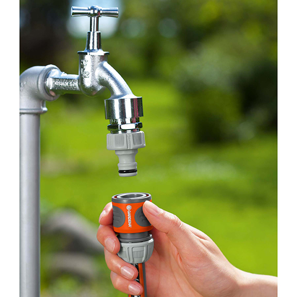 The Hose Connector by GARDENA is a useful adapter for a quick and easy-to-use connection at the beginning of the hose. The elastic ring, which you will find at the end of the hose connector, serves as protection from damage.