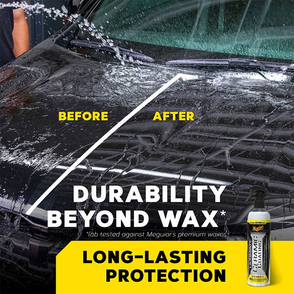 Meguiar's® Ultra-durable cutting-edge ceramic protection with excellent water beading while also increasing gloss, slickness and concealing minor paint defects.