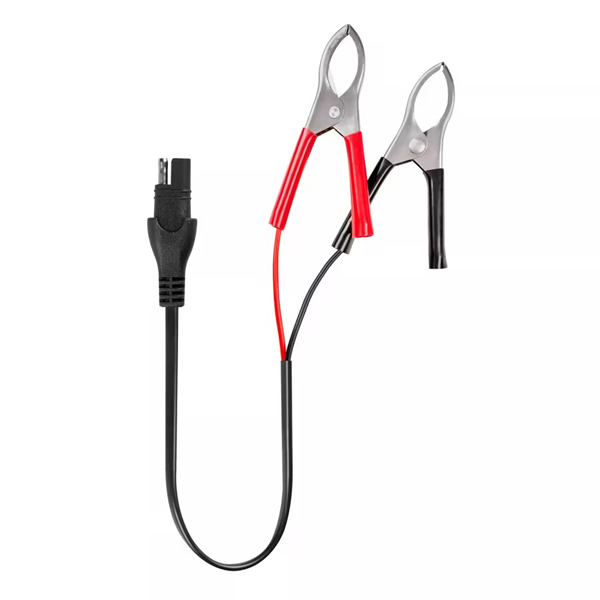 Supplied with DC power plug and battery clips, works in overcast conditions and is IP 65 water resistant. Reverse polarity protection prevents damage if the clamps are connected to the incorrect battery poles.