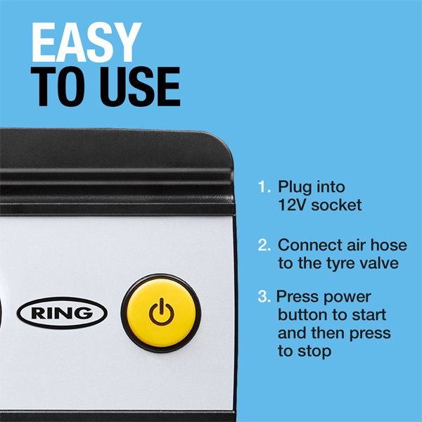 Stay prepared for low tyre pressure wherever you are with the Ring TYREinflate 10 Compact Tyre Inflator. This easy-to-use, space-saving solution is ideal for everyday drivers who want a straightforward way to keep their tyres properly inflated.