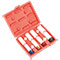 Chrome Molybdenum sockets, hardened, tempered and anodised for corrosion resistance. Suitable for use with impact tools. Each 6pt socket is sleeved to prevent damage to alloy wheels and nuts. Colour-coded sockets for easy size selection. Standard 17, 19, 21mm sockets and 27mm for Land Rover, Range Rover and other 4x4 applications, plus spare PE sleeves and depth inserts. Supplied in storage case.
