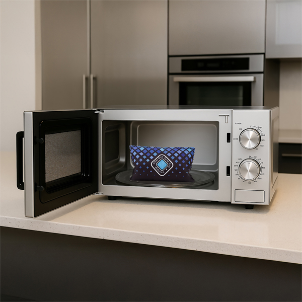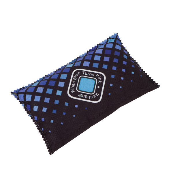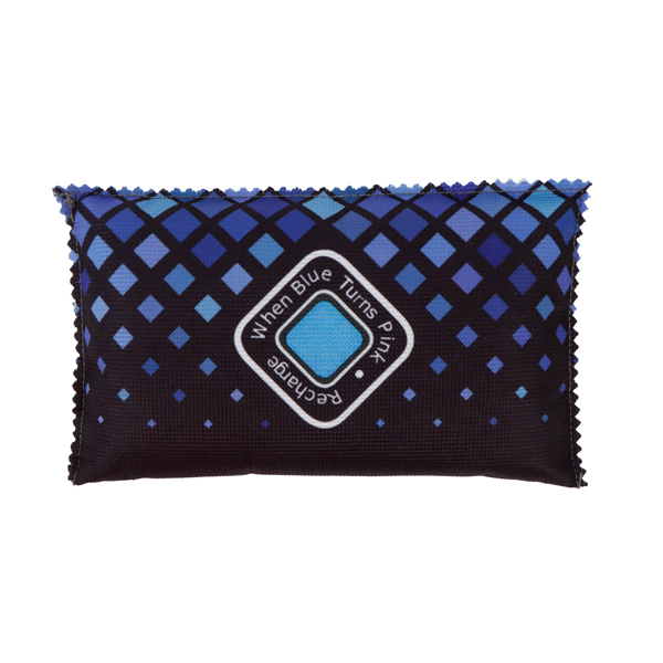 It's packed with moisture-absorbing silicon dioxide that are activated by placing the dehumidifier in the microwave for six minutes. This is indicated when the item is pink and will turn blue when it's ready to use.